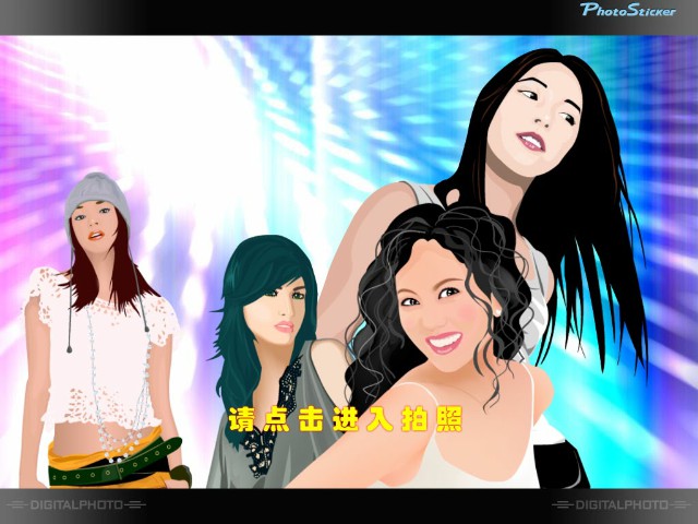 最常用的項(xiàng)目,點(diǎn)擊該大圖標(biāo)按鈕后將首先選擇組合的款式,確定款式后進(jìn)入拍照流程進(jìn)行拍照、裝扮和打印等流程。