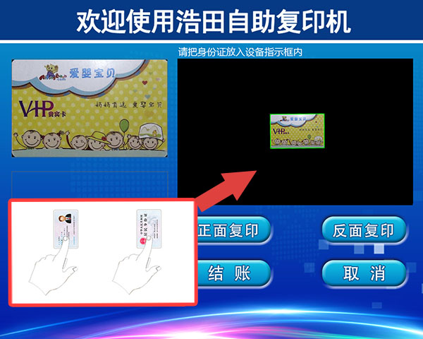 浩田自助二代身份證打印機(jī)可以進(jìn)行二代身份證快速復(fù)印、掃描復(fù)印和讀卡器復(fù)印,可以微信、支付寶、投幣支付,投放在地鐵、機(jī)場、車站、辦證大廳、銀行、學(xué)校等人流密集地